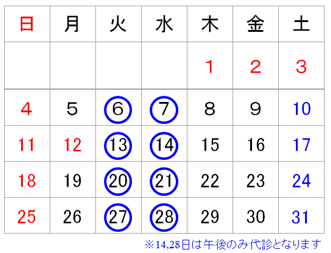 | 診療時間 | 月 | 火 | 水 | 木 | 金 | 土 | 日 |