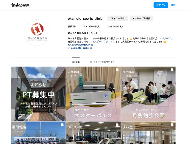 おかもと整形外科インスタグラム:https://www.instagram.com/okamoto_sports_clinic/
