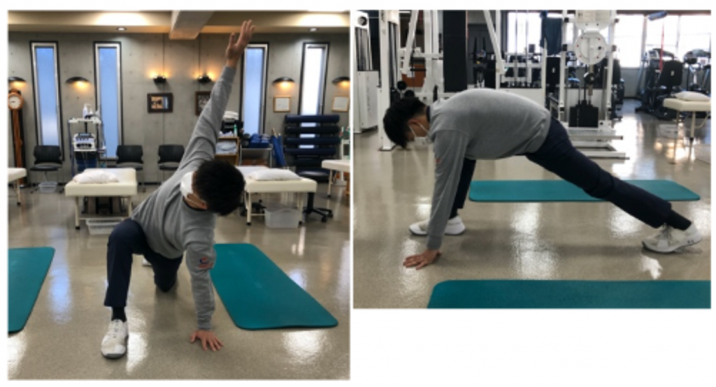 ③これらを左右入れ替えながら、10秒ずつ行います。