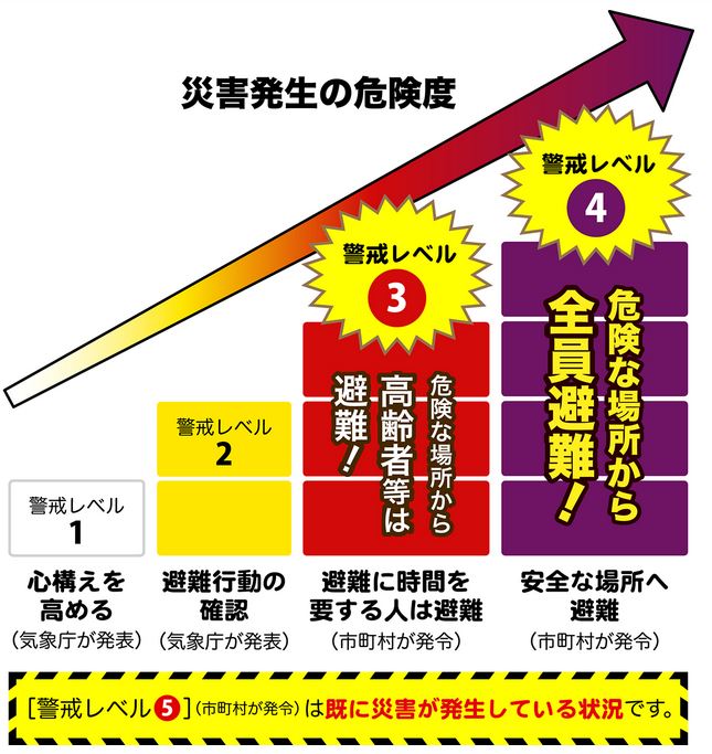 警戒レベル3の「高齢者等避難準備行動」までは変わりません。