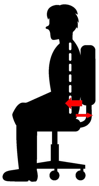 お尻を後ろまで下げて座ると、背もたれの一番下が骨盤の上に当たるようになります。