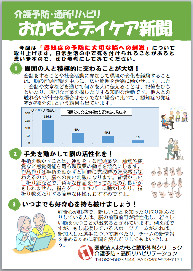 今回のテーマは「「認知症の予防に大切な脳への刺激」です。