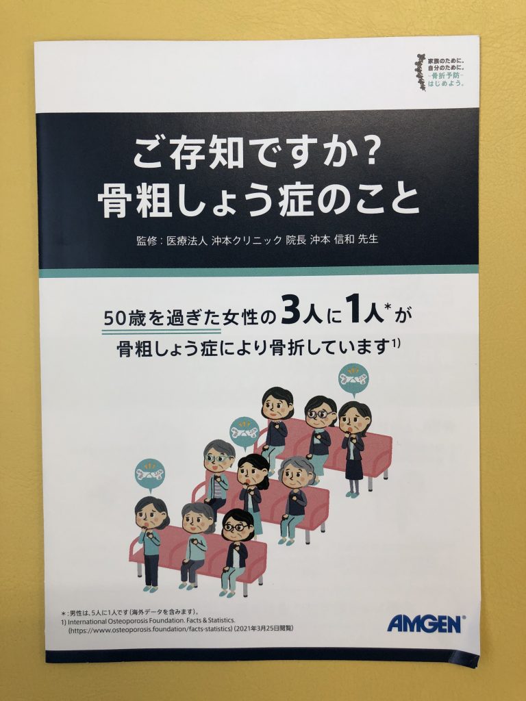 また、沖本先生監修の骨粗鬆症のパンフレットを院内に設けていますので、こちらもどうぞ手に取りご覧ください。