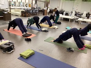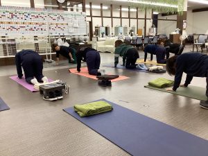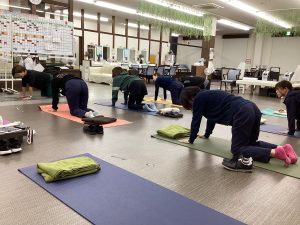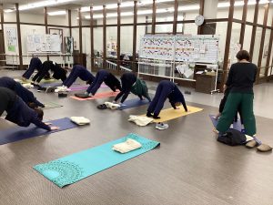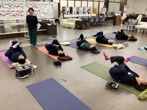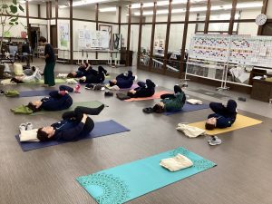 呼吸法から、姿勢や身体の内部を整える動き、、、ヨガの経験者皆無の参加者たち😅