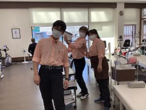 男性スタッフも着用しているのを見て、男性ご利用者からは「かっこ悪い」「断れずに着せられて可哀想やね」と辛口コメントもありました(‘◇’)ゞ